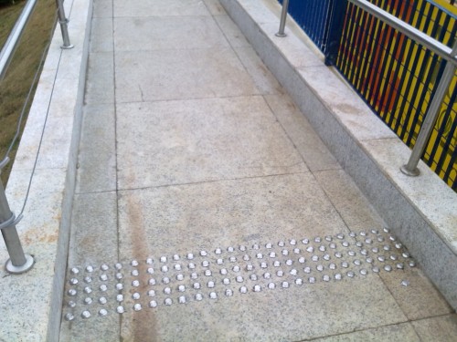 Afinal como a pessoa com deficiencia visual consegue se localizar por pisos para rampas de acesso? Os pisos para rampas de acesso ou piso tátil é a forma pela qual uma informação é sentida através da sensação tátil da planta dos pés. Pessoas com deficiência visual possuem sensações táteis aguçadas e através dos pés sentem diferentes relevos no solo. Padronizando esse relevo, cria-se uma linguagem tátil, ou seja, aquela que poderá ser sentida através dos pés, sendo compreendida e decodificada, criando uma orientação fundamental a mobilidade. A combinação dos pisos táteis com pontos e traços são definidas como linguagem binária.